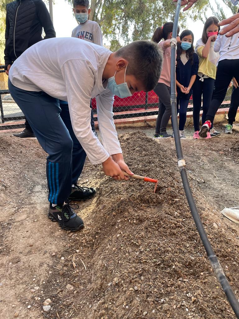 Esta mañana hemos culminado el círculo de economía sostenible correspondiente proyecto Circ 4 life. En este último paso, los alumnos del CEIP ALFONSO X EL SABIO, han utilizado el compost para el abono del huerto escolar.